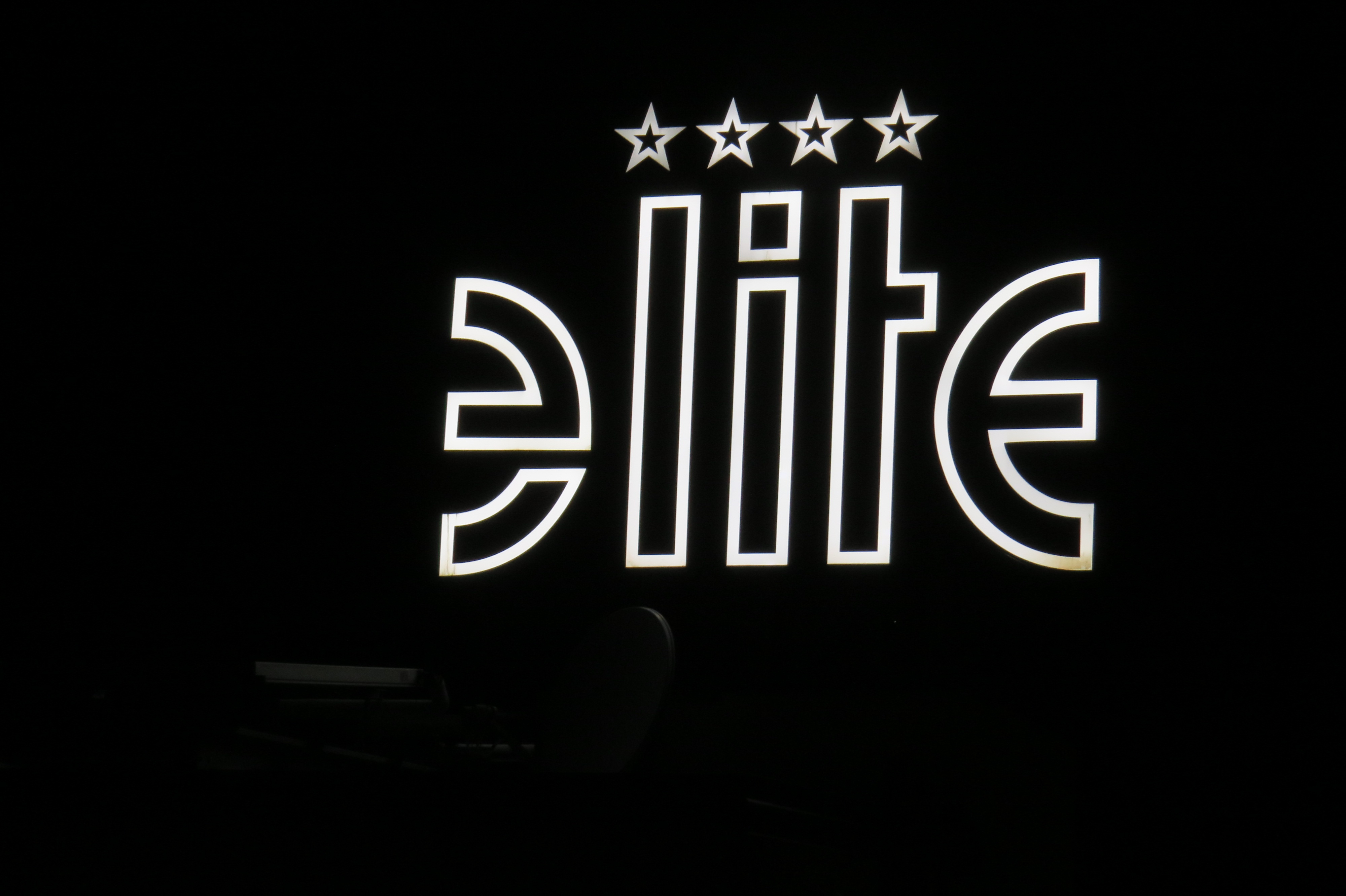 Schriftzug Hotel Elite bei Nacht